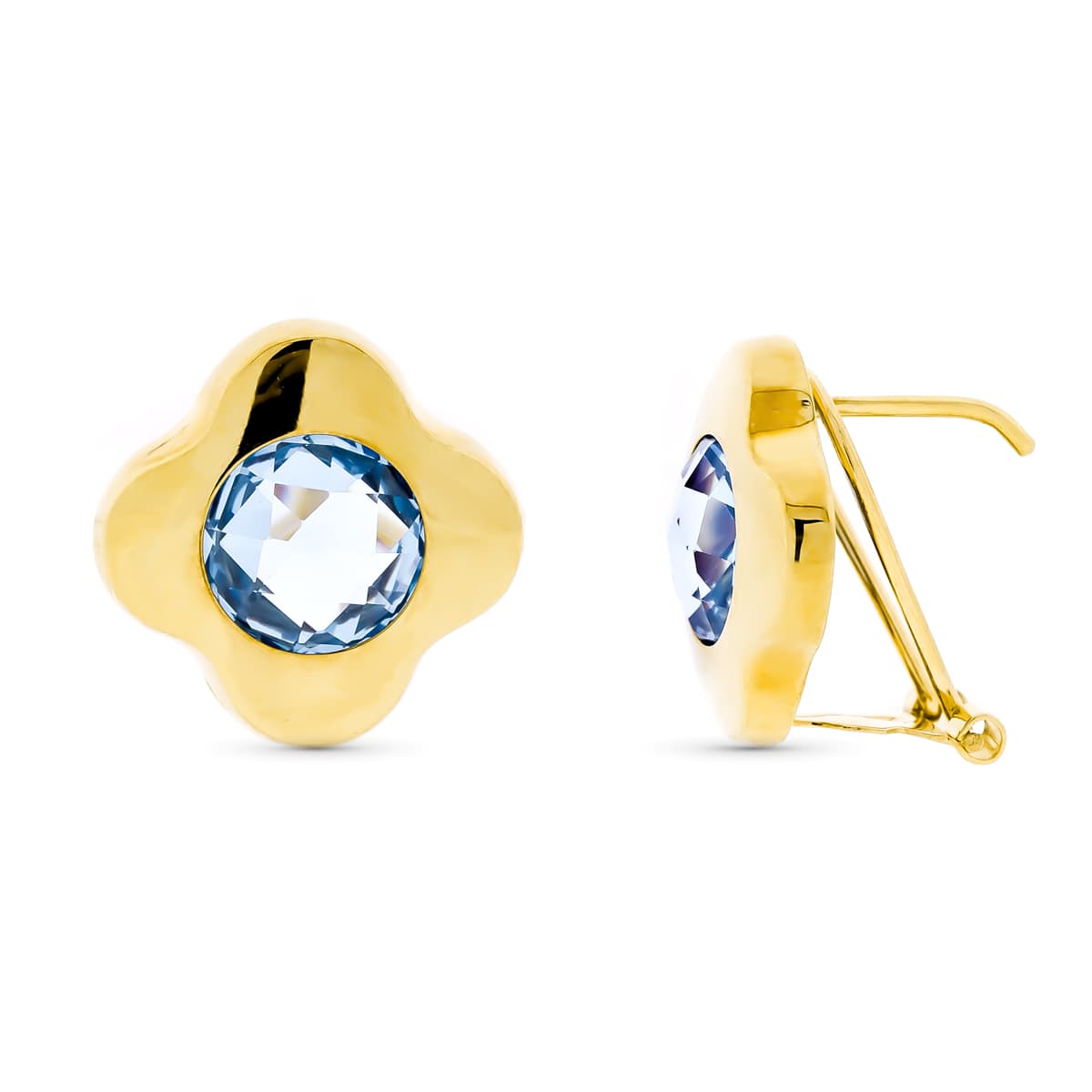 18K PENDIENTES ORO AMARILLO PIEDRA 8 MM AGUAMARINA 15 MM