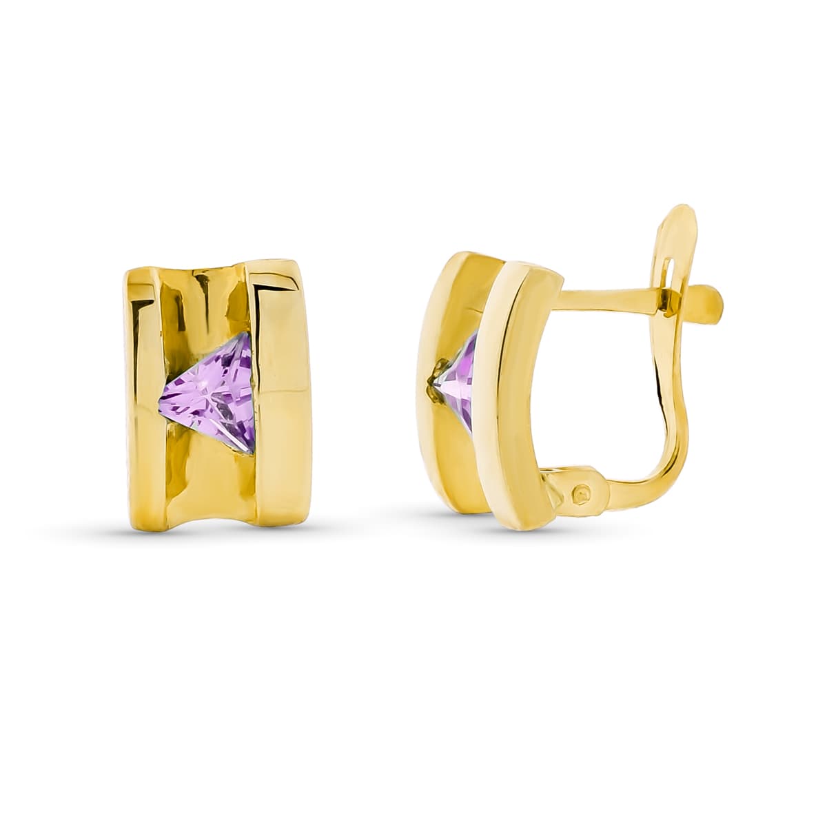 18K PENDIENTES ORO AMARILLO PIEDRA AMATISTA 10X7 MM