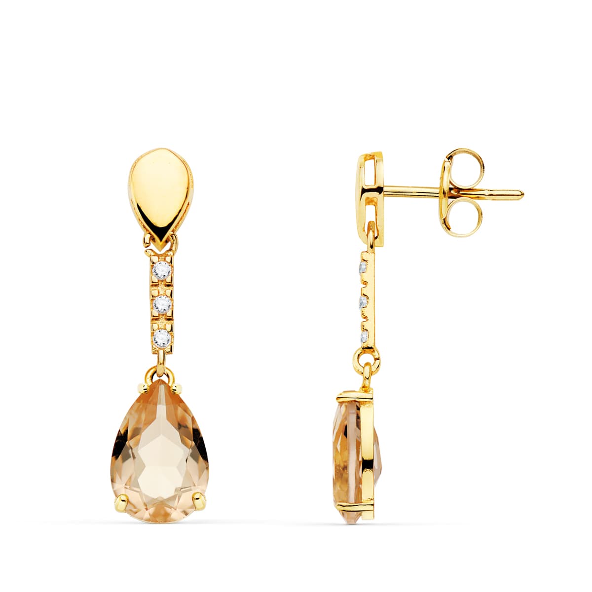 18K PENDIENTES ORO AMARILLO PIEDRA GOTA COLOR KUNCITA 28X7 MM