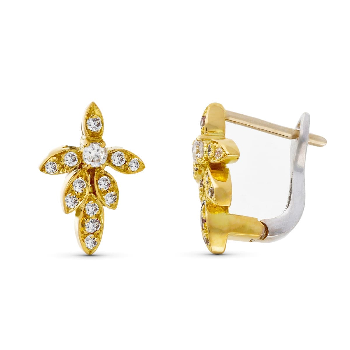 18K PENDIENTES ORO BICOLOR HOJITAS CIRCONITAS CATALAN