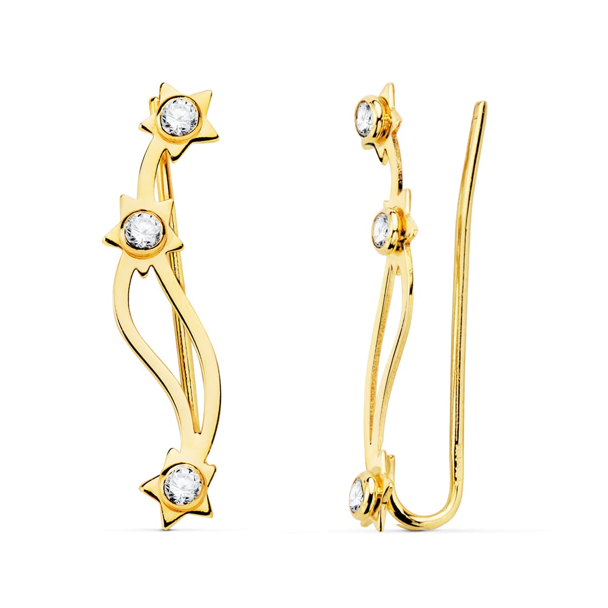 18K PENDIENTES TREPADORES CIRCONITAS-ESTRELLAS