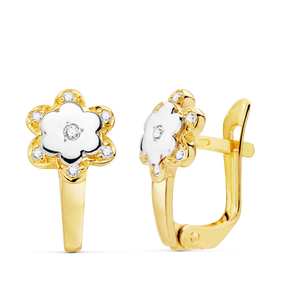 18K PENDIENTES BICOLOR CIRCONITAS 13X7 MM