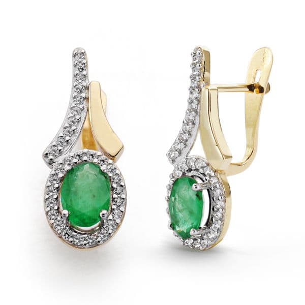 18K PENDIENTES ESMERALDA Y CIRCONITAS 20X8 MM