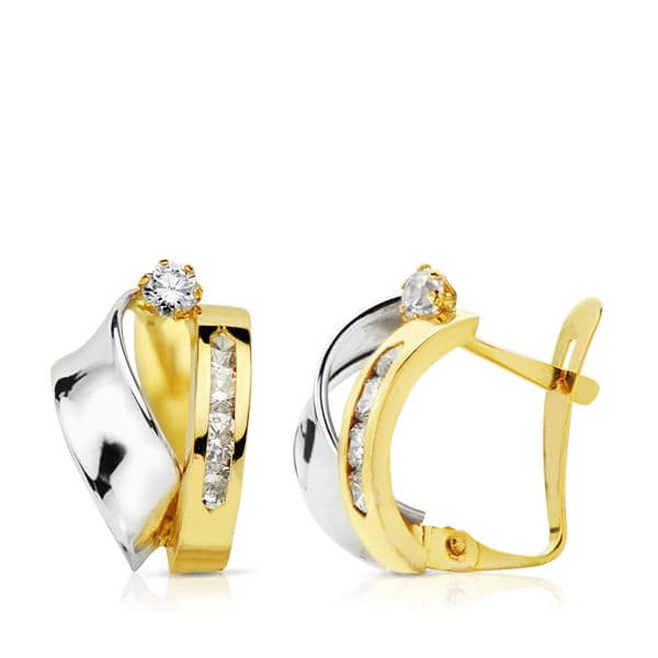 18K PENDIENTES ORO BICOLOR BANDAS 13X9 MM