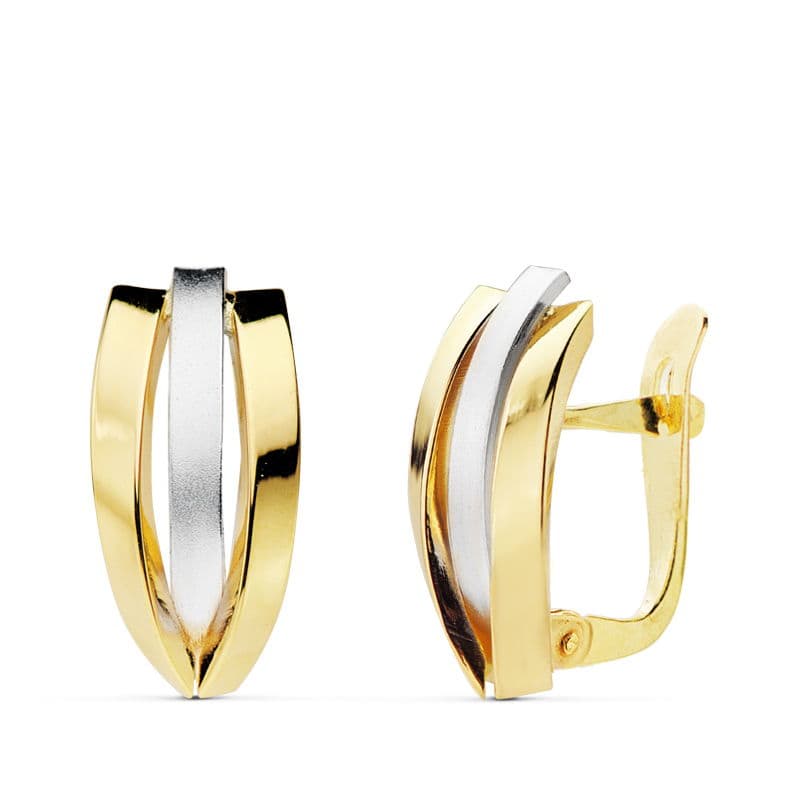 18K PENDIENTES ORO BICOLOR BANDAS 16X7 MM