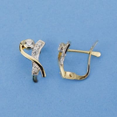 18K PENDIENTES ORO BICOLOR CIRCONITAS 10X6 MM