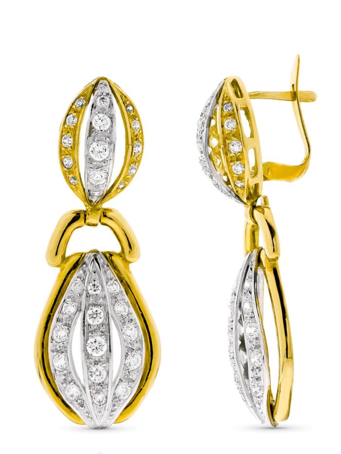 18K PENDIENTES ORO BICOLOR LARGOS CON CIRCONITAS