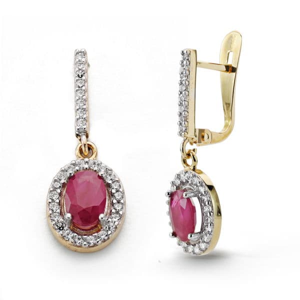 18K PENDIENTES RUBI Y CIRCONITAS 22X7 MM