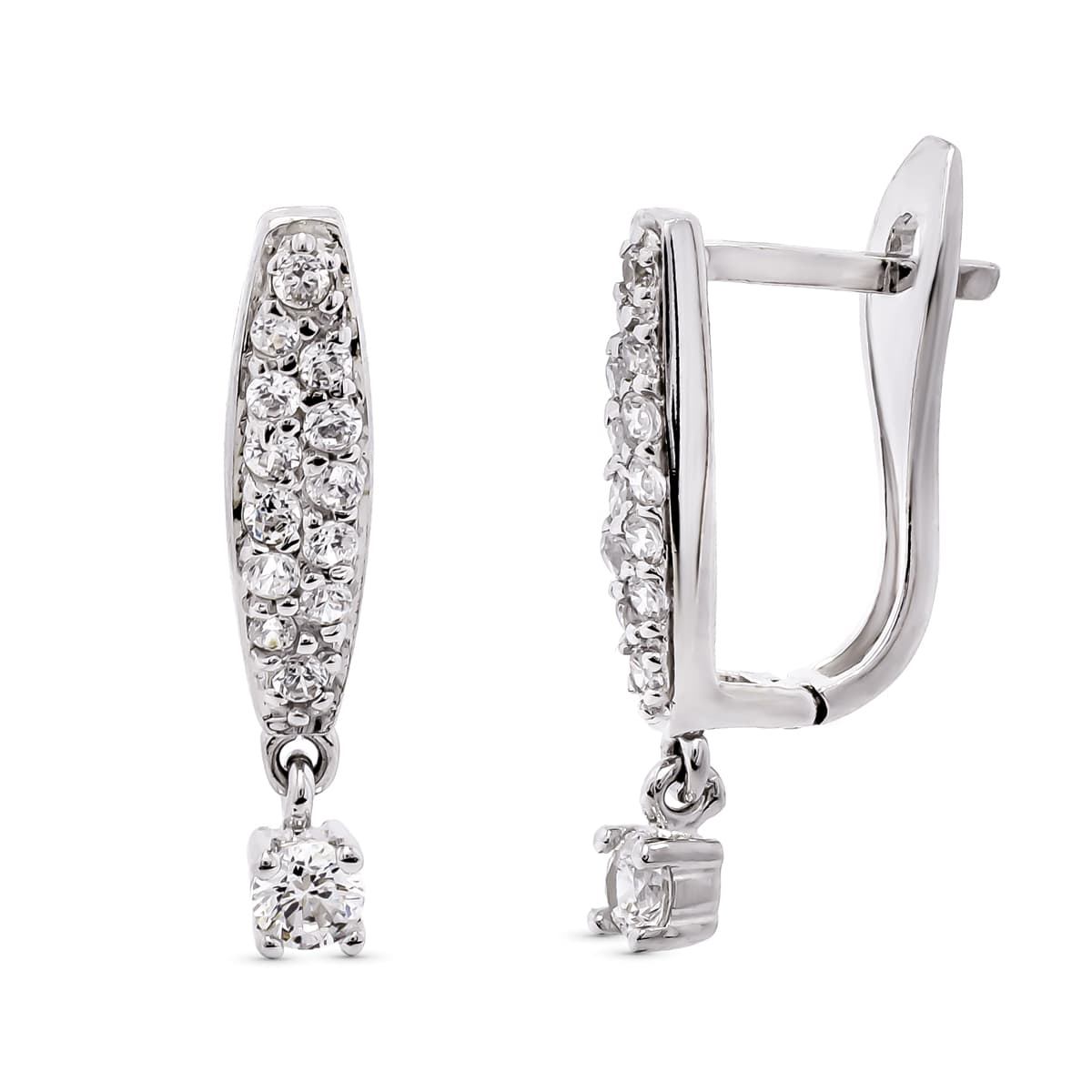 18K PENDIENTES LARGOS ORO BLANCO CON CIRCONITAS 20X4 MM CIERRE CATALAN