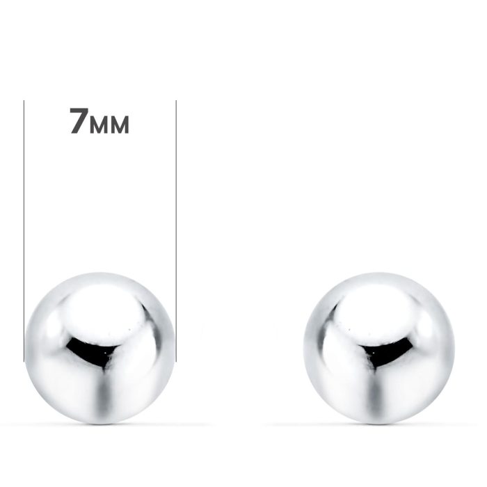 18K PENDIENTES ORO BLANCO BOLA LISA 7 MM CIERRE PRESION