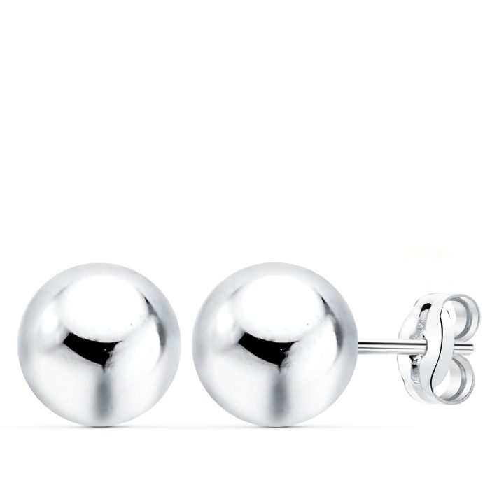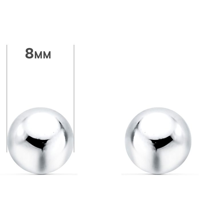 18K PENDIENTES ORO BLANCO BOLA LISA 8 MM CIERRE PRESION