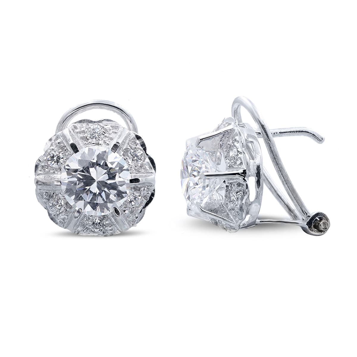 18K PENDIENTES ORO BLANCO CON CIRCONITAS EN GARRAS CIERRE OMEGA