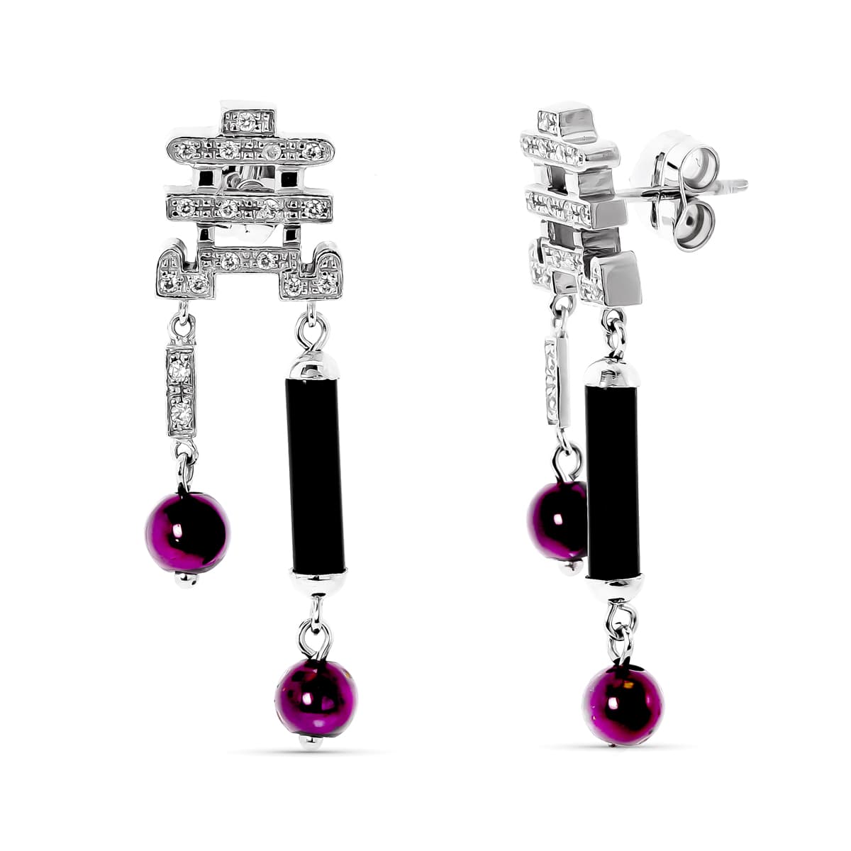 18K PENDIENTES ORO BLANCO CON CIRCONITAS Y BOLAS