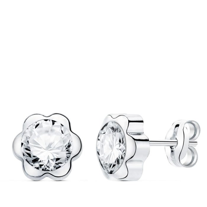 18K PENDIENTES ORO BLANCO FLOR CON CIRCONITA 7X7 MM CIERRE PRESION.