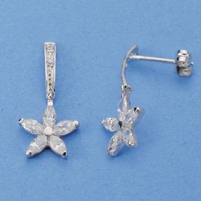 18K PENDIENTES ORO BLANCO FLOR PRESION. 20X9 MM