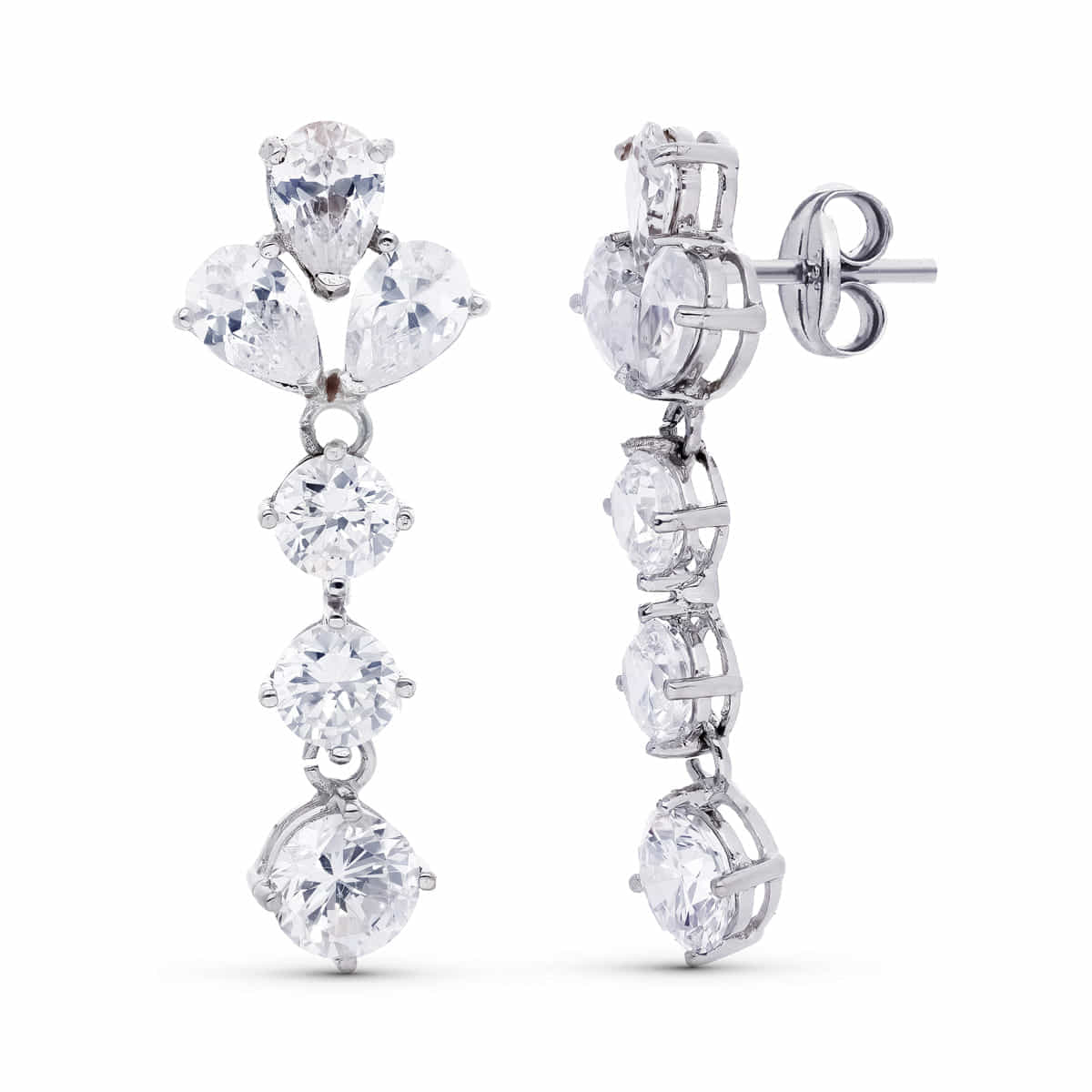 18K PENDIENTES ORO BLANCO LARGOS NOVIA 30X11 MM CIERRE PRESION
