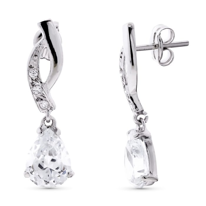 18K PENDIENTES ORO BLANCO PERA Y CIRCONITASS 23X7 MM PRESION