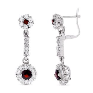 18K PENDIENTES ORO BLANCO PIEDRA COLOR 16X14 MM CIERRE OMEGA