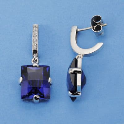 18K PENDIENTES ORO BLANCO PIEDRA COLOR 27X11 MM