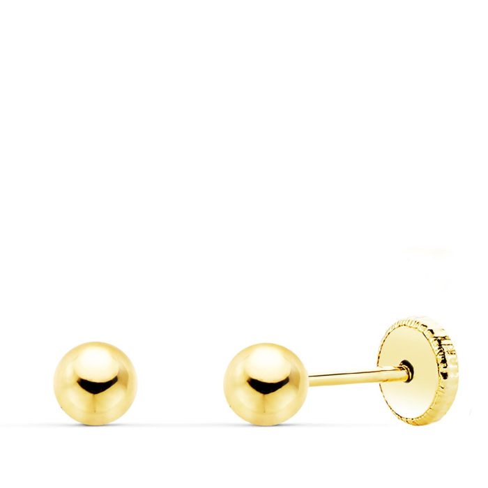 18K PENDIENTES ORO AMARILLO BOLA LISA 4 MM CIERRE ROSCA