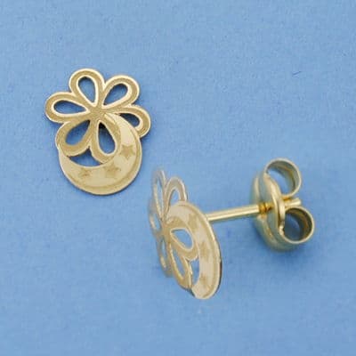 18K PENDIENTES ORO AMARILLO FLOR Y LUNA 9X7 MM