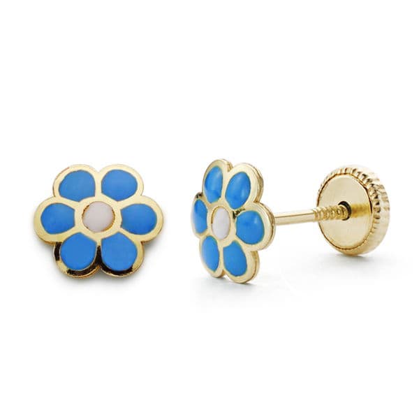 18K PENDIENTES ORO AMARILLO MARGARITA AZUL. 6X6 MM