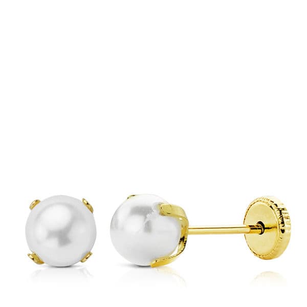 18K PENDIENTES ORO AMARILLO PERLA 5 MM4 PATILLAS ROSCA