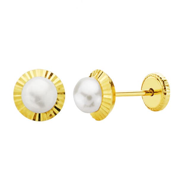 18K PENDIENTES ORO AMARILLO PERLA ORLA TALLADA 6 MM