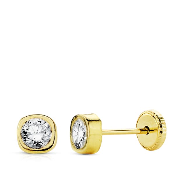 18K PENDIENTES ORO AMARILLO CUADRADOS CIRCONITA 4 MM