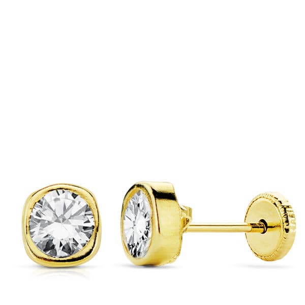 18K PENDIENTES ORO AMARILLO CUADRADOS CIRCONITA 5 MM