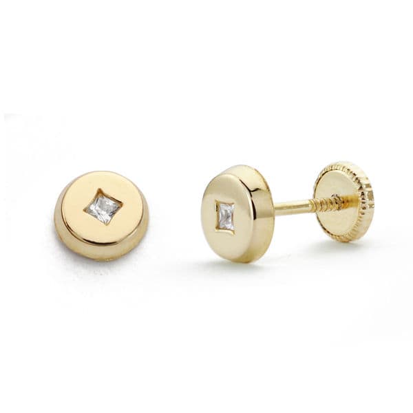 18K PENDIENTES ORO AMARILLO ROSCA REDONDO CIRCONITA 5 MM