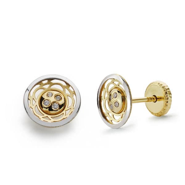 18K PENDIENTES ORO BICOLOR REDONDO CIRCONITA 7 MM