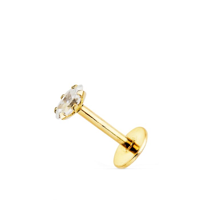 18K PIERCING DE OREJA ORO AMARILLO CON CIRCONITA 4 X 2 MM. CIERRE ROSCA