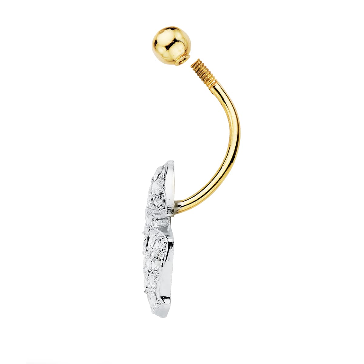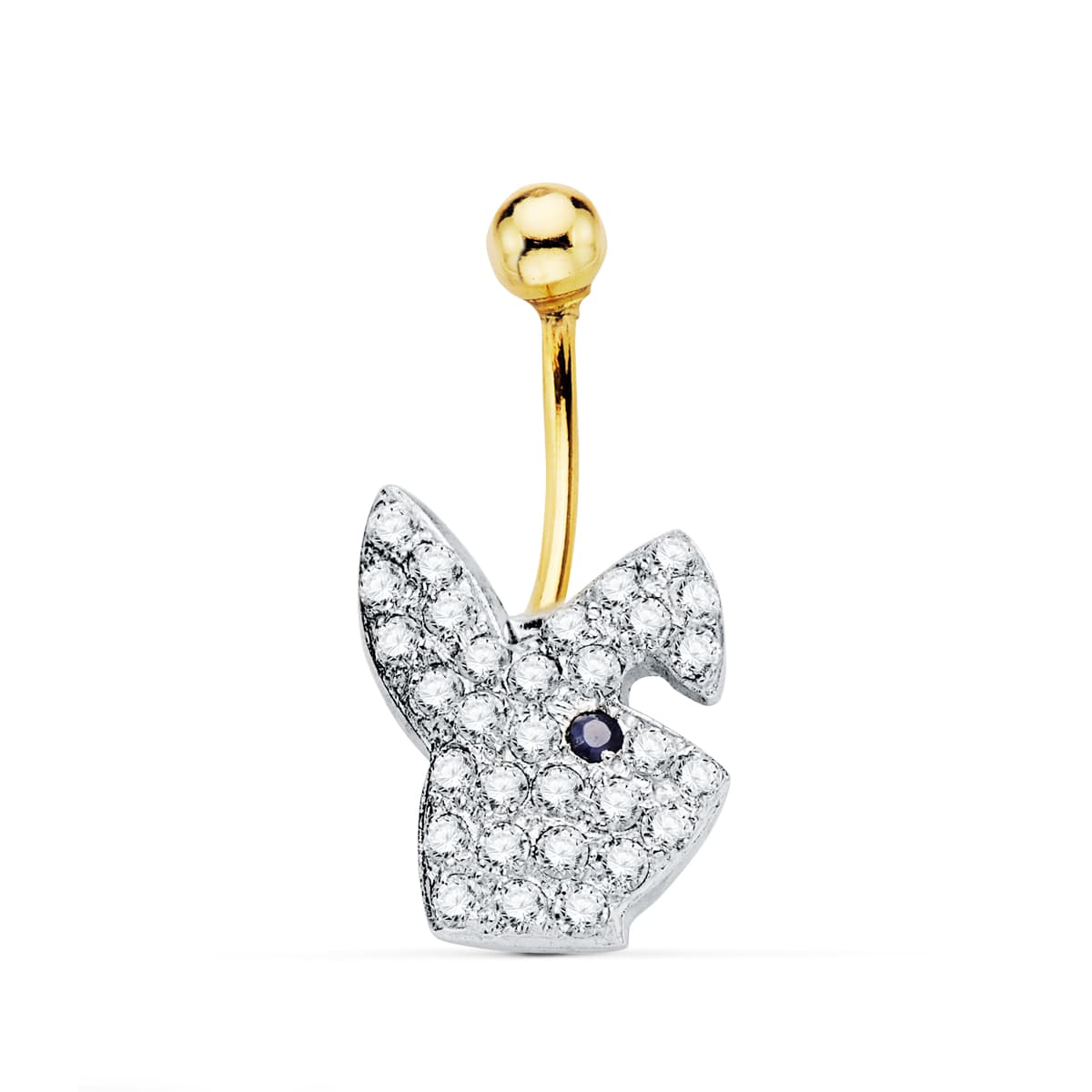 18K PIERCING OMBLIGO O.BICOLOR CONEJITO CIRCONITAS 13X10 MM CIERRE BOLA 3.5 MM