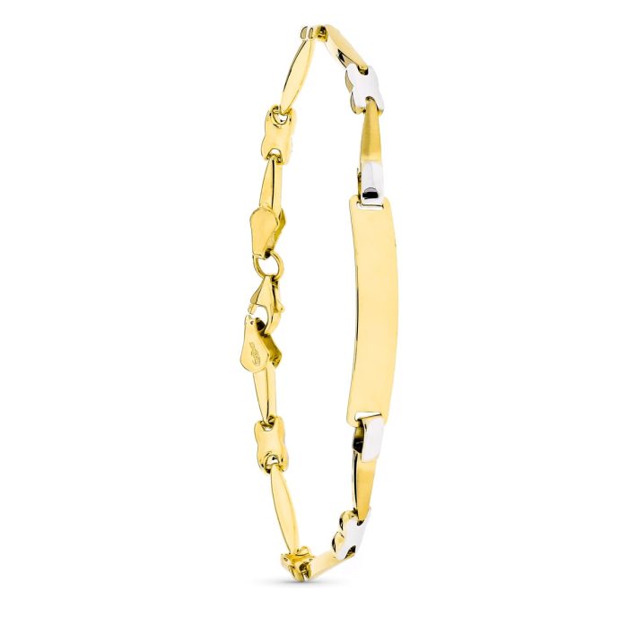 Abraza la elegancia con esta Esclava de Oro de Ley de 18 Kilates. Cada 18K ESCLAVA ORO BICOLOR MATE Y BRILLO 18 CM es una declaración de distinción, fusionando la pureza del oro con un diseño atemporal. Esta pulsera es más que un accesorio; es una expresión de lujo que envuelve tu muñeca con un resplandor inigualable, elevando tu estilo a nuevas alturas. Además esta Esclava está fabricada por el prestigioso fabricante de joyería Pérez Mora de Córdoba, cuna de la joyería de Oro en España.