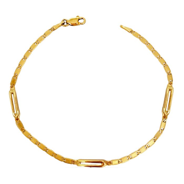 Embárcate en la exquisitez con una pulsera de Oro de Ley de 18 Kilates, una sinfonía de elegancia y refinamiento. Cada pieza 18K PULSERA FINA MOTIVO. 2.80 GR es una obra de arte, fusionando lujo con atemporalidad. Lleva contigo la distinción del oro puro, una declaración de estilo que resplandece con cada movimiento, un accesorio incomparable para destacar tu elegancia única. Además esta Pulsera está fabricada por el prestigioso fabricante de joyería Pérez Mora de Córdoba, cuna de la joyería de Oro en España.