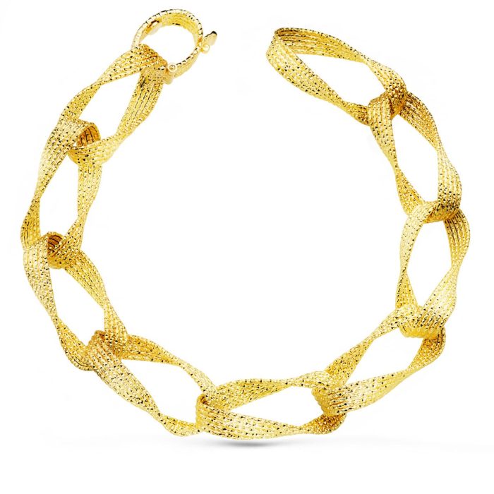 18K PULSERA ORO AMARILLO ESLABONES HUECOS ANCHO 11 MM LARGO 22 CM