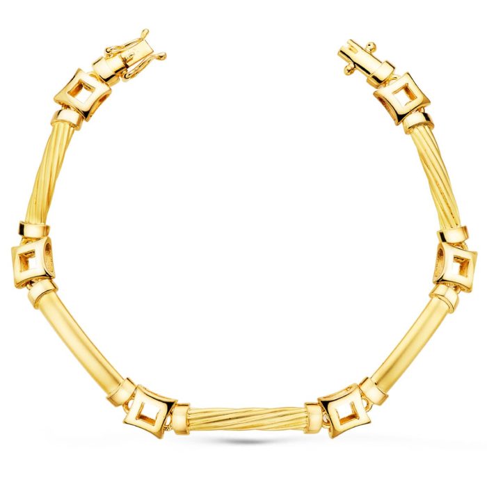 18K PULSERA ORO AMARILLO ESLABONES Y CUADRADOS ANCHO 8 MM LARGO 20 CM