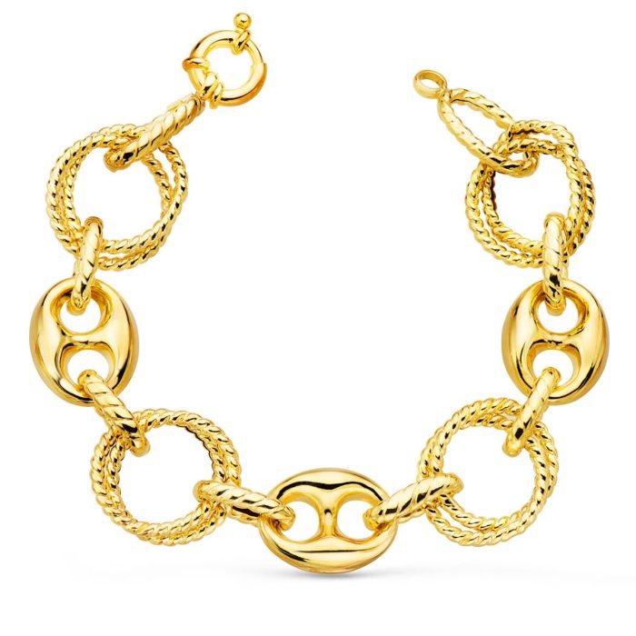 18K PULSERA ORO AMARILLO ESLABONES Y NUDO BARCO. ANCHO 20 MM LARGO 20.5 CM