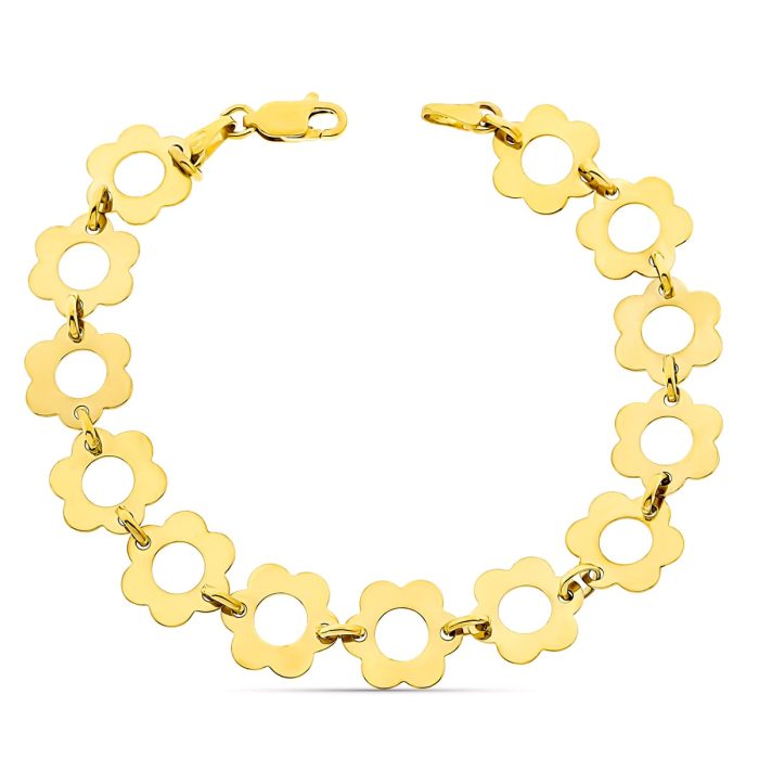 18K PULSERA ORO AMARILLO FLORES ANCHO 11 MM LARGO 19 CM