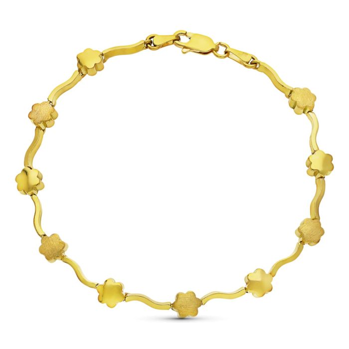 18K PULSERA ORO AMARILLO FLORES MATE Y BRILLO