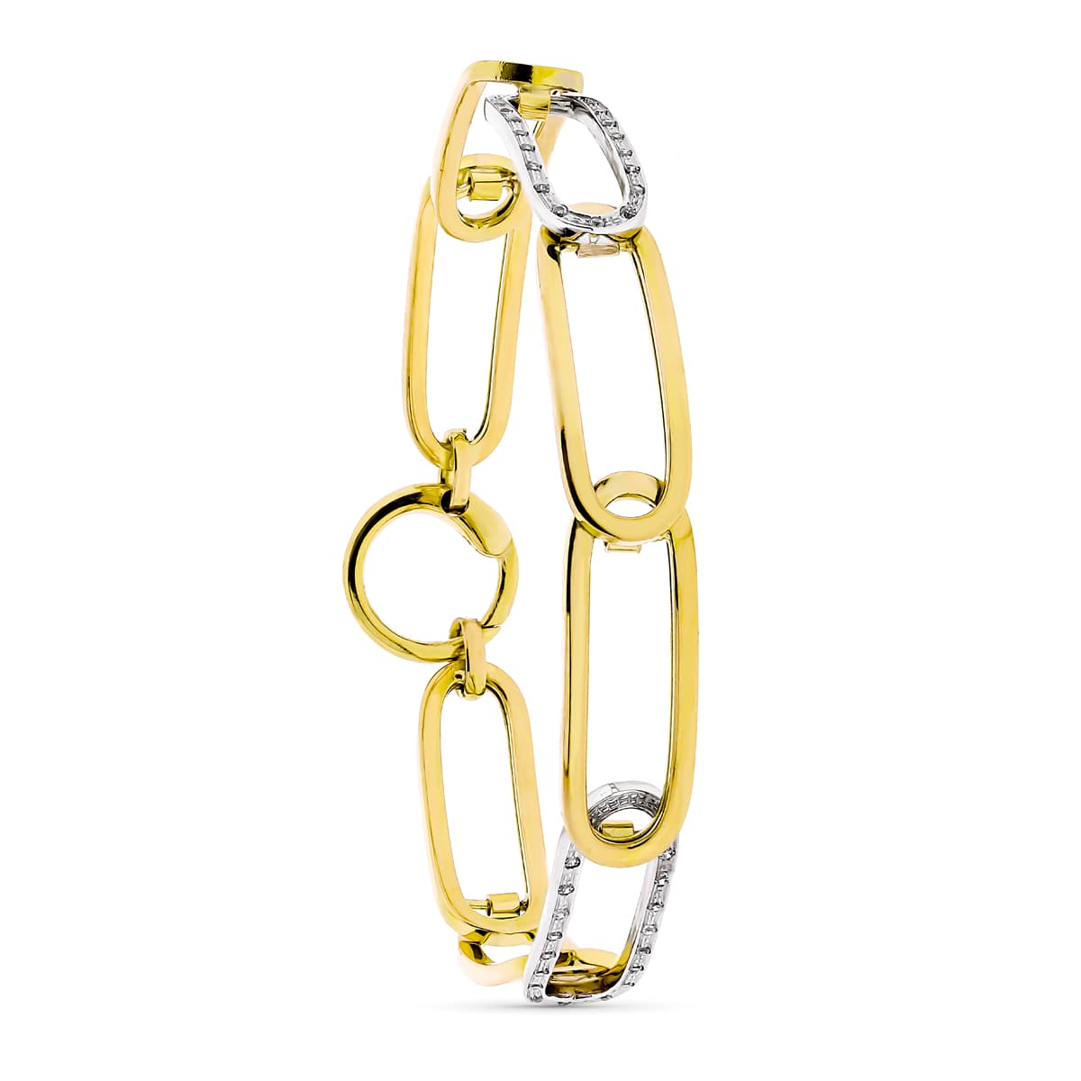 18K PULSERA ESLABONES CALADOS BICOLOR CIRCONITAS ANCHO 9 MM LARGO 20 CM
