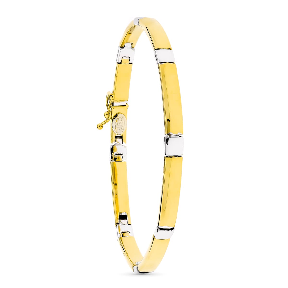 18K PULSERA ORO BICOLOR CUADRADOS Y RECTANGULOS BRILLO