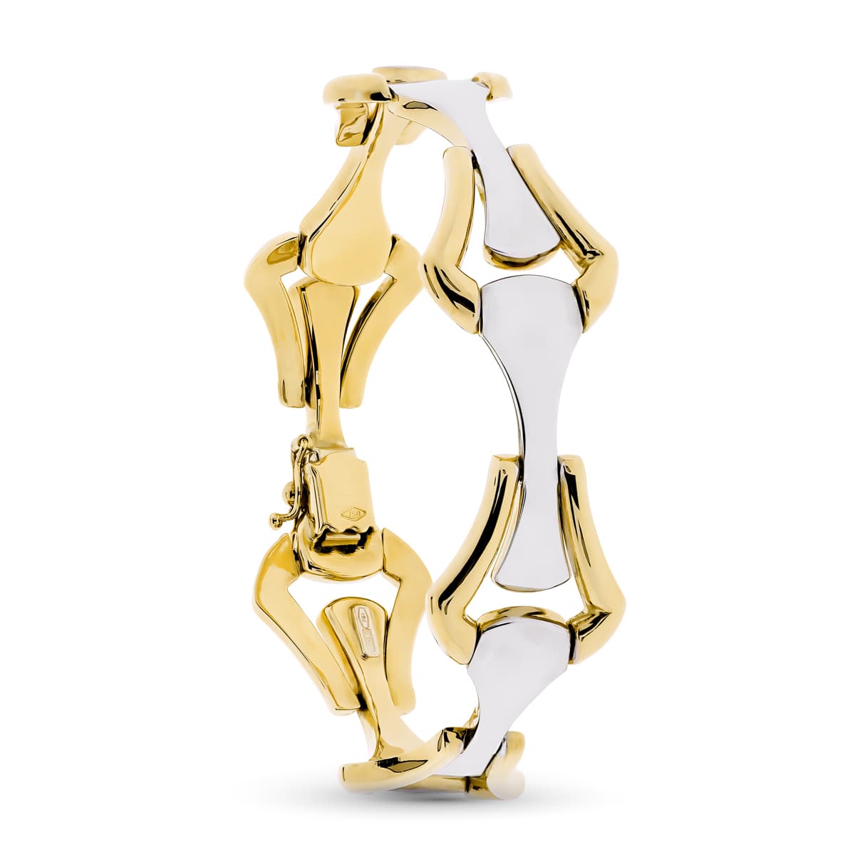 18K PULSERA ORO BICOLOR ESLABONES EN FORMA DE ROMBO