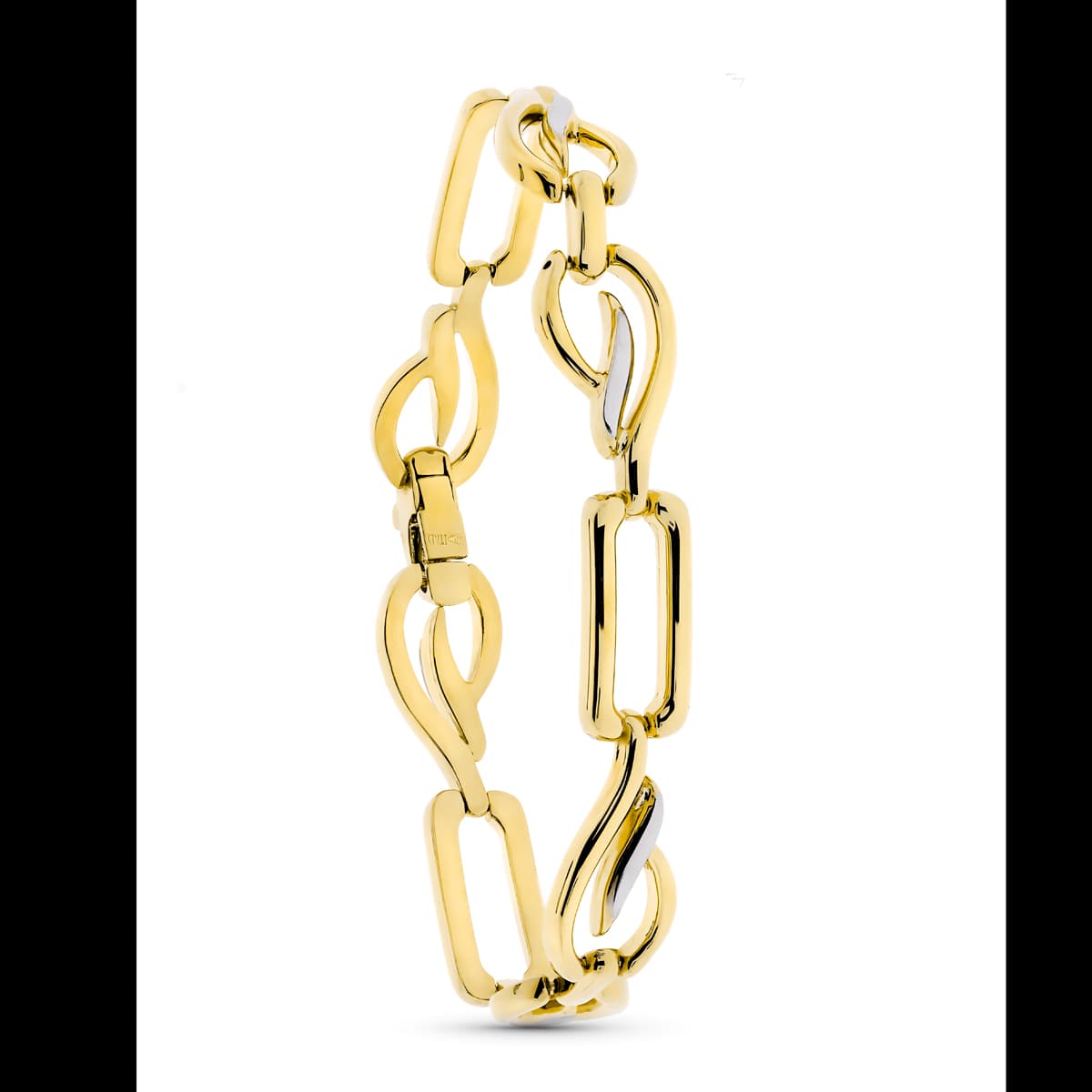 18K PULSERA ORO BICOLOR ESLABONES OVALES Y RECTANGULARES