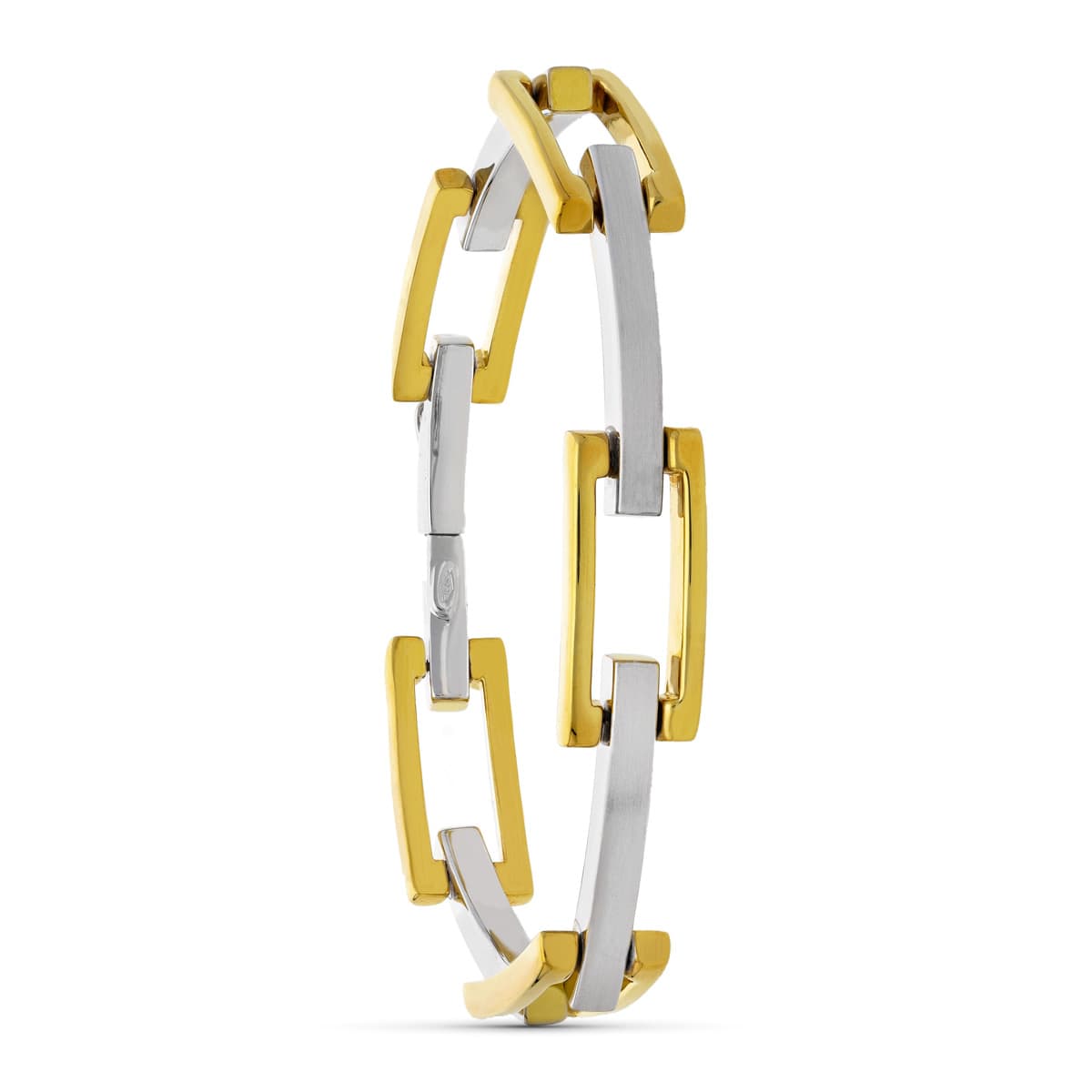 18K PULSERA ORO BICOLOR ESLABONES RECTANGULARES