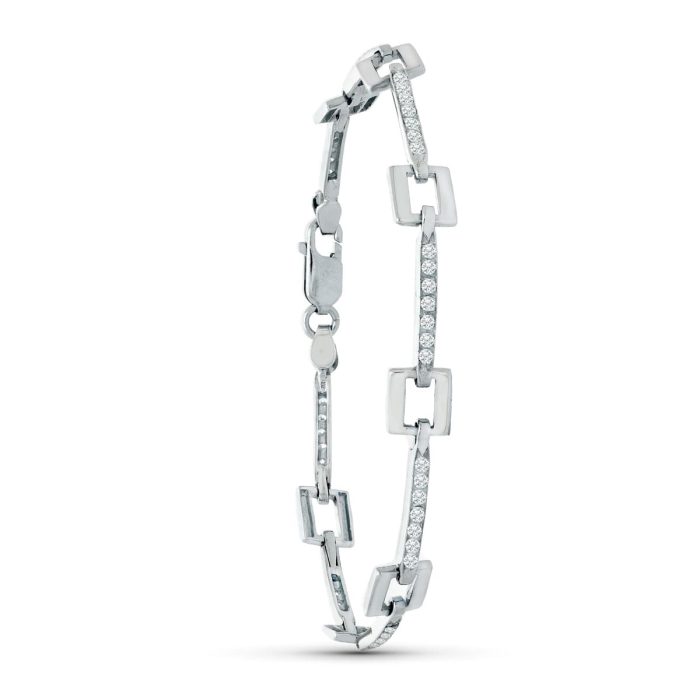 18K PULSERA ORO BLANCO CUADRADOS Y BARRAS CIRCONITAS